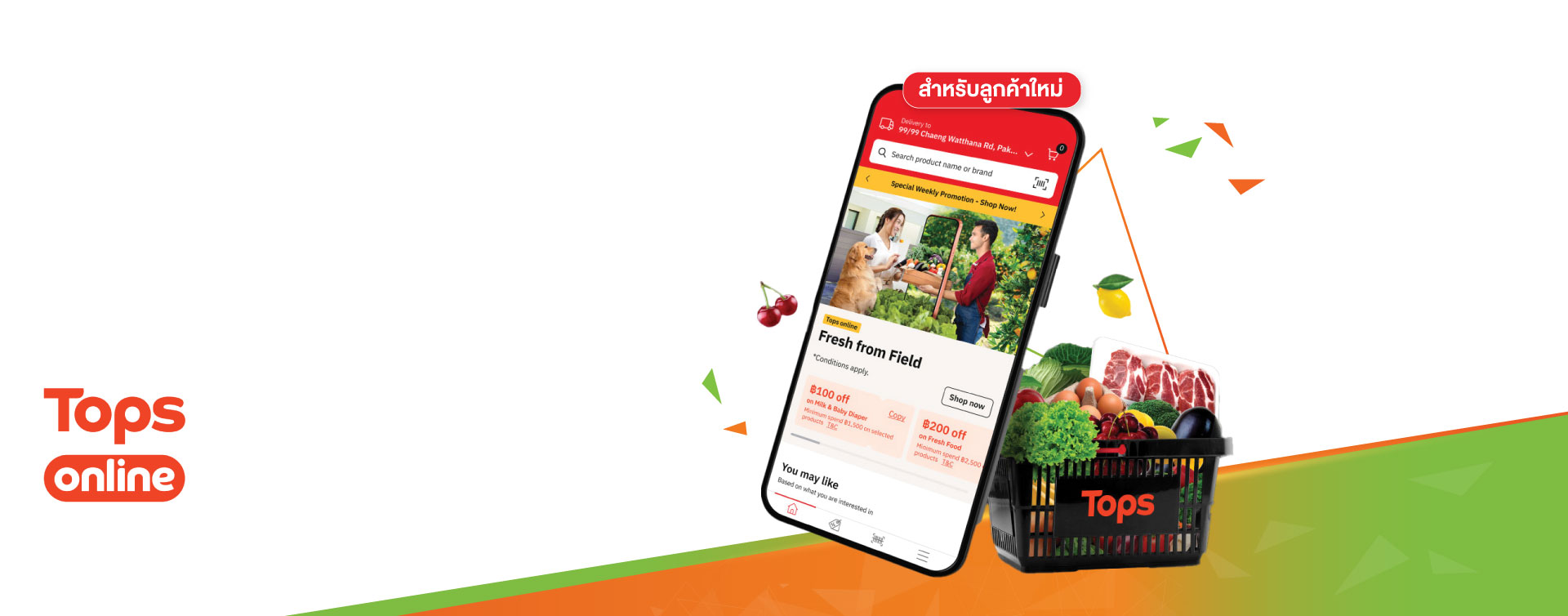 รับส่วนลด 120 บาท เมื่อซื้อสินค้าครบ 1,000 บาทขึ้นไป ต่อใบเสร็จ (คำนวณจากมูลค่าหลังหักส่วนลดทุกชนิดแล้ว) สำหรับลูกค้าที่เป็นสมาชิกใหม่ของ Tops Online เท่านั้น